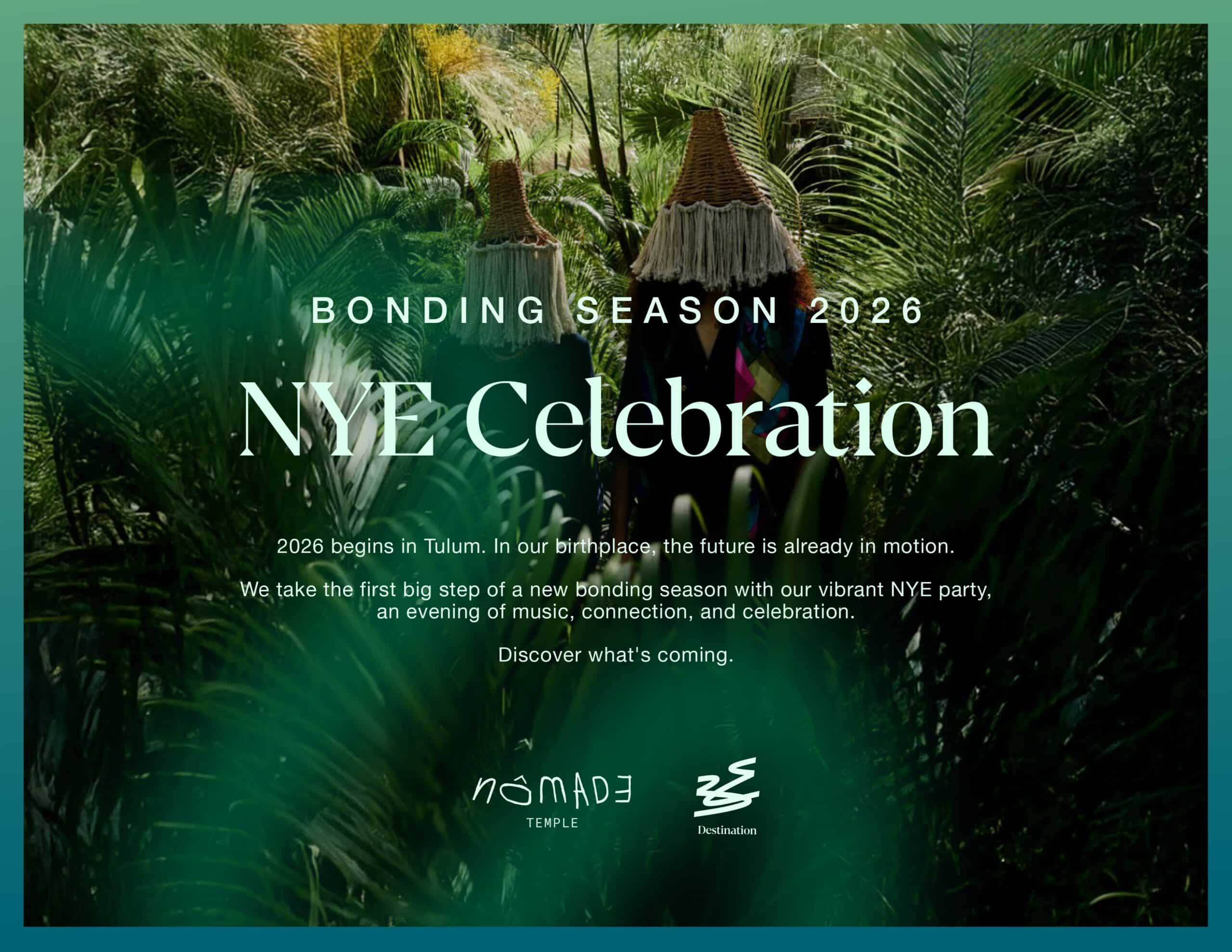 For those welcoming the new year in Tulum, our agent Christie recommends celebrating New Year’s Eve at NOMADE Tulum, where the transition into 2026 begins with the opening of Bonding Season 2026.