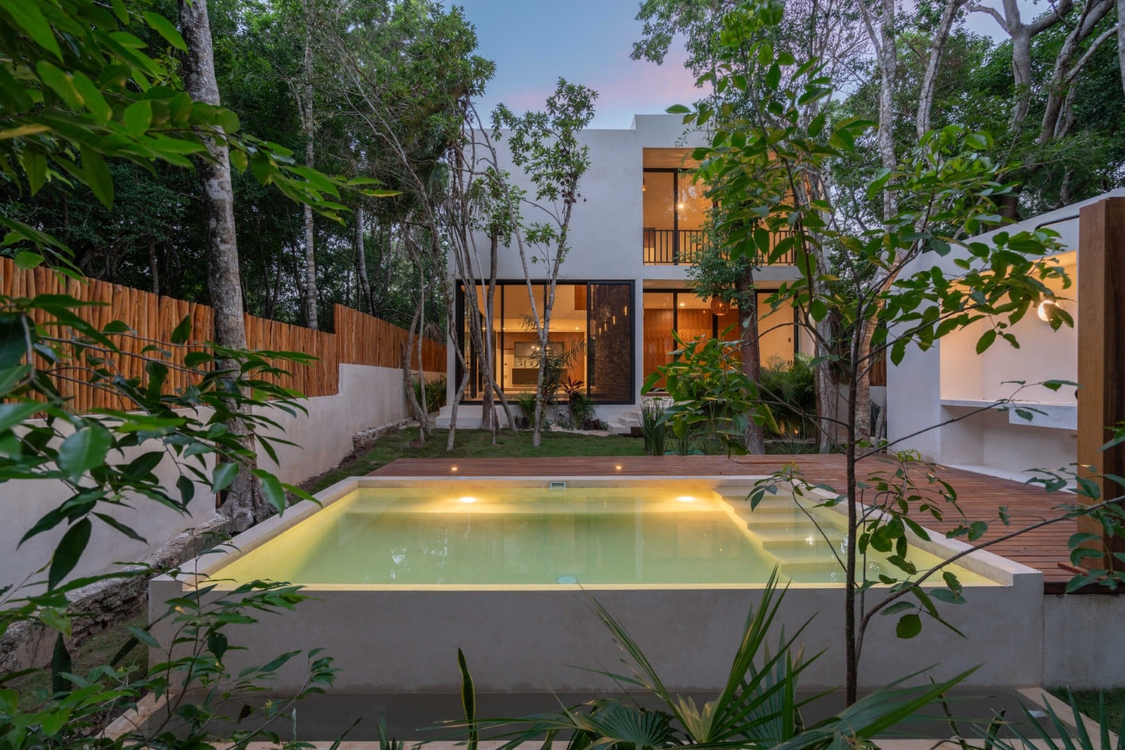 Sustainability and long-term efficiency are built into the design, with systems for water recycling, solar energy preparation, and a solar water heater already in place. The property also preserves native vegetation, incorporating relocated endemic trees into its landscaped grounds. Residents of Bahía Príncipe benefit from access to the PGA Riviera Maya Golf Course, beach club, and a range of services and amenities within a secure, master planned environment in Tulum.