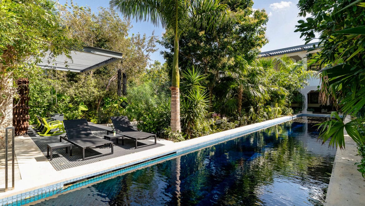 At the center of the experience is a 25 m natural pool (82 ft), treated without chemical additives. Its length and placement anchor the property’s layout, offering a quiet, wellness-forward focal point that feels rare within the Centro Histórico. The surrounding outdoor areas are designed for unhurried mornings, relaxed conversations, and a sense of privacy that guests increasingly seek in Mérida.