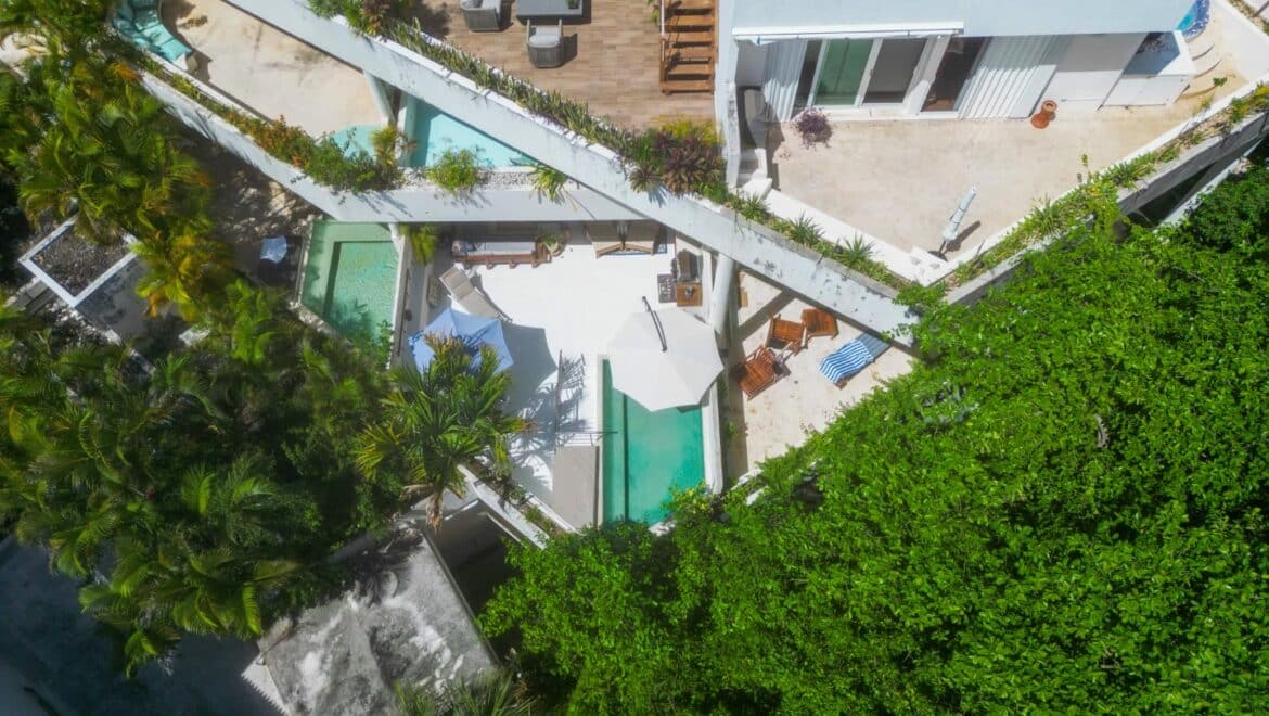 At the center of the home lies a private tropical retreat: an oversized plunge pool surrounded by lush, jungle-greenery that ensures total privacy and tranquility. The design features both covered and open-air lounging areas, ideal for entertaining or quiet reflection in a serene and exclusive setting. Elegant open-plan interiors, air conditioning, ceiling fans, and curated designer furnishings create an atmosphere of comfort and refined sophistication throughout.