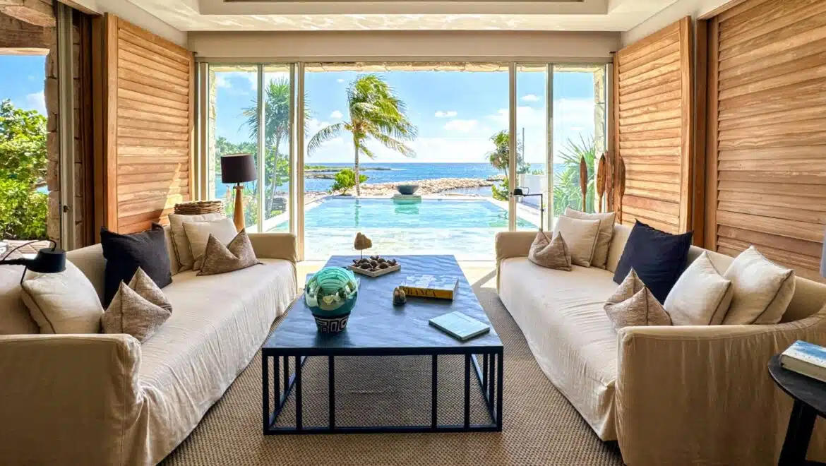 Every line, texture, and finish of Casa Caleta has been crafted to evoke calm and connection. The 900 m² (9,688 ft²) residence unfolds across open, light-filled spaces where natural stone, hand-finished marble, and tropical hardwoods form a seamless dialogue with the ocean beyond. Escudero’s signature tropical minimalism celebrates authenticity—each element chosen not for ornamentation, but for harmony.