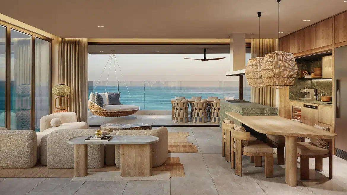 Life here centers on the shoreline. The beach club offers all-day food and beverage service, complemented by a naturally designed beachfront pool that blends into the bay’s landscape. The experience is elevated by an iconic pier by Harari with private decks, loungers, and overwater hammocks, plus kayaks and paddleboards ready for the calm waters of Tankah Bay.