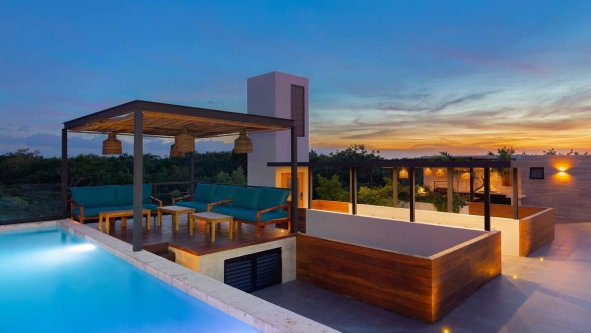 The residence offers approximately 120 square meters or 1,292 square feet of interior living space, complemented by a spacious private terrace with its own plunge pool, creating a comfortable indoor-outdoor living experience that reflects the relaxed lifestyle of the Mexican Caribbean.